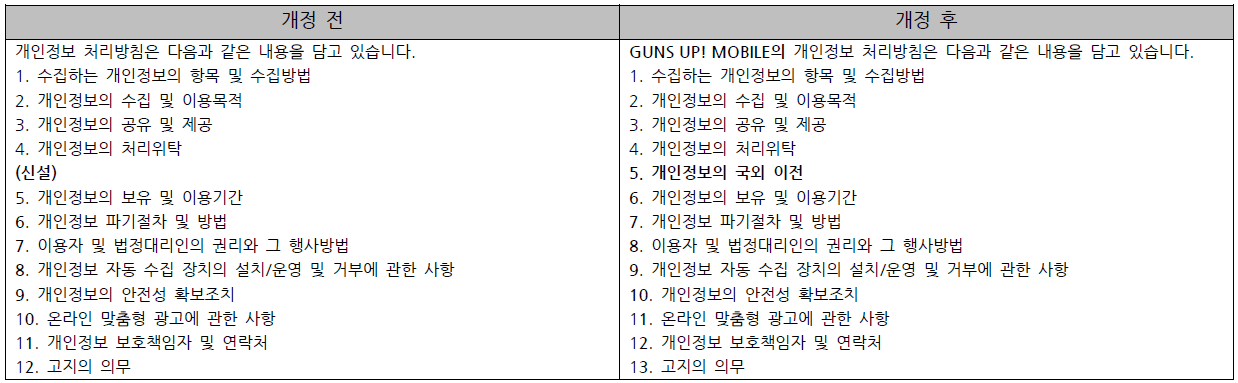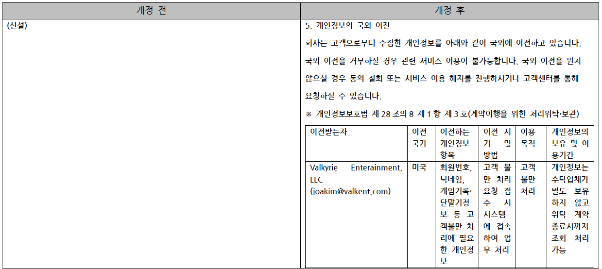 - 개인정보의 국외 이전에 관한 사항을 신설 하였습니다.