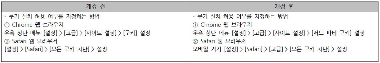- 쿠키 설치 허용 여부를 지정하는 방법을 현행화 하였습니다.