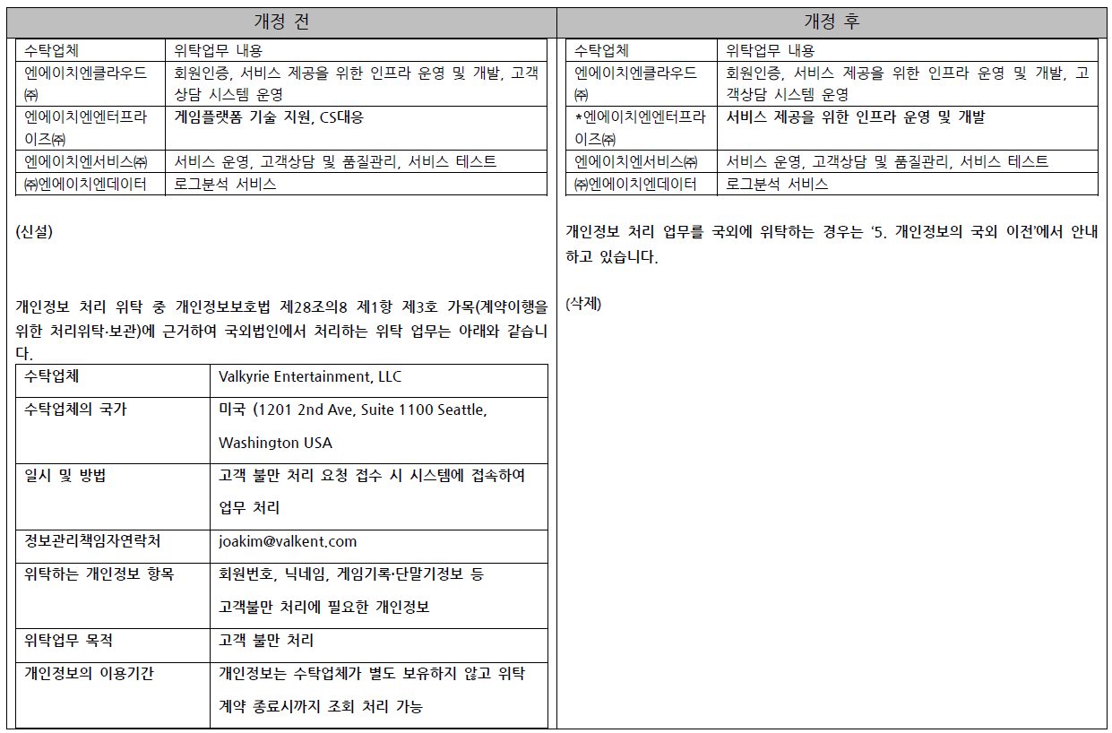 - 수탁업체와 위탁업무 내용을 현행화 하였습니다.